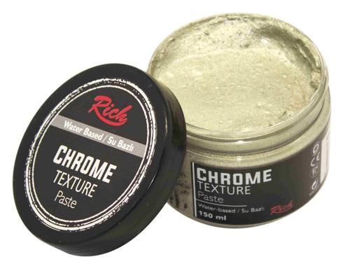 Supertrend Chrome Texture Pasta su bazlıdır. Tüm sert yüzeylerde kullanılabilir. Serbest desen ve stencil kabartma çalışmaları için uygundur. Spatula, fırça veya sünger ile kullanılır. Özel granürlü yapısı sayesinde dokulu bir zemin elde edilmesini sağlar. Kuruma süresi uygulama kalınlığına göre değişkenlik gösterir. Sağlığa zararlı madde içermez.