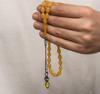 Gümüş 1000 Ayar Kazaz Püsküllü Sıkma Kehribar Tesbih