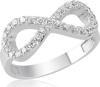 Gençlere ve kendisini genç hisseden tüm bayanlara; gümüş ve zirkonun ışıltısı yaşam enerjinizi etrafınıza yansıtacak. Sizin olduğu kadar sevdiklerinizin de keyifle takacağı gümüş sonsuzluk bayan yüzük, aynı zamanda sonsuz sevginizi paylaşabileceğiniz en güzel hediyelerden biri olacaktır. 925 ayar gümüşten imal edilmiştir. Gümüş üzerine rodyum kaplama yapılmıştır. Rodyum kaplama yapılan gümüş bayan yüzük modelleri parlaklığını uzun süre muhafaza eder, oksitlenmesi gecikir. Gümüş bayan sonsuzluk yüzük üzerinde bulunan beyaz taşlar zirkondur. Bayan gümüş yüzük modellerimizin tamamında olduğu gibi gümüş bayan sonsuzluk yüzük de el emeği ile üretilmiştir. Gümüş ve değerli taşlar nedeniyle belirtilen ortalama ürün ağırlığında ± %10 sapma olabilmektedir.