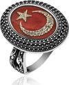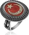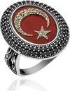 Gümüş Göktürkçe alfabesi Yazılı Ay Yıldız Bayan Yüzük
