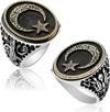 Gümüş Göktürkçe alfabesi Yazılı Ay Yıldız Erkek Yüzük