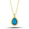 Gümüş Gold Damla Mavi Opal Taşlı Kadın Kolye