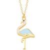 Doğasının gereği taşıdığı renklerle dövmelerde kullanılan flamingolar, zarafet ve güzelliğin sembolüdür. Bu anlamlar onun için ortak olarak kullanılan tanımlardır ancak kuş olmalarının getirdiği manevi rehber, özgürlük, aşk ve asalet gibi anlamlara da gelmektedir. Bu sayede şık bir hediye seçeneğidir. Gümüş üzerine gold kaplama yapılmıştır. Gold kaplama yapılan gümüş kadın kolye modelleri parlaklığını uzun süre muhafaza eder, oksitlenmesi gecikir. Kolye ile birlikte gelen zincir tamamen gümüş olup 45 cm uzunluğundadır. Tüm gümüş kadın kolye modellerinde olduğu gibi gümüş kadın flamingo kolye modeli de tamamen el emeği üretilmiştir. Bu nedenle maden ve değerli taşlardan dolayı belirtilen ortalama ürün ağırlığında ± %10 sapma olabilmektedir.