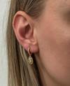 Gümüş Gold Oval Taşlı Sallantılı Küpe