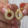 Halka detayı ile göz kamaştıran küpe; zarifliğinizi ve şıklığınızı daimi kılmanıza yardımcı oluyor. Yenilikçi dokunuşlarla tasarlanmış bu küpe, özel gün ve gecelerde kombinlerinize eşlik edecek hoş bir üründür. Siz de bu şık küpeyi, takı koleksiyonunuza dahil edebilirsiniz. Halka bayan küpe; 925 ayar gümüşten imal edilmiştir.Gümüş üzerine gold kaplama yapılmıştır. Üzerinde bulunan taşlar zirkondur. Diğer küpelerde olduğu gibi gümüş halka bayan küpe de el emeği ile üretilmiştir. Gümüş ve değerli taşlar nedeniyle belirtilen ortalama ürün ağırlığında ± %10 sapma olabilmektedir.