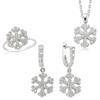 Büyük küçük hemen herkesi gülümseten, sevindiren, coşku yaratan kar, tüm güzel görüntüsü ve yaşattığı çocuksu sevincin yanında, taneleriyle de çok özel bir doğal mucize. Doğanın mucizevi kristalleri her ne kadar şekilleri, özellikleri ve görünüşleri ile birbirine çok yakın olsa da, aslında her bir kar tanesinin eşsiz olduğu biliniyor. Hiçbir kar tanesi bir diğerine benzemiyor, her kar tanesinden aslında sadece bir tane var… Sizlerde aşkınıza onun sizin için eşsiz ve biricik olduğunu sessizce dillendirmeye ne dersiniz... Her zevke uygun kar tanesi set modeli ile her zaman şık ve ışıl ışıl olmanın zamanı geldi. 925 ayar gümüşten imal edilmiştir. Gümüş üzerine rodyum kaplama yapılmıştır. Rodyum kaplama yapılan gümüş set modelleri parlaklığını uzun süre muhafaza eder, oksitlenmesi gecikir. Üzerinde bulunan beyaz taşlar zirkondur. Zincir boyu ortalama 45 cm"dir. Ürünlerimizin tamamı el emeği ile üretilmiştir. Gümüş ve değerli taşlar nedeniyle belirtilen ortalama ürün ağırlığında ± %10 sapma olabilmektedir.