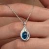 Gümüş Mavi Zirkon Taşlı Küre Kadın Kolye