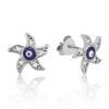Gümüş Nazarlı Deniz Yıldızı Çivili Küpe