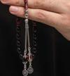 Murty99 Gümüş Kaplama Püsküllü Küre Kesim 99 Luk Kırmızı Akik Tesbih