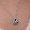 Renkli kalpli çiçek kolye genellikle sevgi, dostluk ve pozitif duyguların bir sembolü olarak kabul edilir. Renklerin çeşitliliği, hayatın farklı yönlerini ve duygusal renk paletini temsil edebilirken, kalp figürü de sevgi ve bağlılığı simgeler. Bu şık kolye; doğum günü hediyesi, sevgililer günü veya özel günlerde tercih edilebilecek mükemmel bir seçenektir.Kolye; 925 ayar gümüşten imal edilmiştir. Gümüş üzerine rodyum kaplama yapılmıştır. Gümüş ve değerli taşlar nedeniyle belirtilen ortalama ürün ağırlığında ± %10 sapma olabilmektedir.
