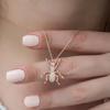 Örümcek; mitolojide, sembolizmde ve efsanelerde yer alan popüler kültürün çeşitli filmlerinde yer almışlardır. Müslümanlar için örümceğin önemi, Peygamberi (S.A.V) ve ilk Müslümanlardan Ebubekir’i (R.A.)Sevr Dağı’ndaki mağarada saklanırken koruyan ve düşmanının gözünden saklayan büyük ağı örmesinde yatar. Mağara önünde birden yetişen ağaca çabucak yuva kuran güvercinler de, bu öneme layık varlıklardandır. Gümüş örümcek bayan kolye modeli 925 ayar gümüşten imal edilmiştir. Gümüş üzerine rose kaplama yapılmıştır. Rose kaplama yapılan gümüş bayan kolyeler parlaklığını uzun süre muhafaza eder ve oksitlenmesi gecikir. Gümüş olan zincirin boyu ortalama 45 cm'dir. Tüm gümüş bayan kolye modellerinde olduğu gibi gümüş örümcek bayan kolye modeli de el emeği ile üretilmiştir. Gümüş ve değerli taşlar nedeniyle belirtilen ortalama ürün ağırlığında ± %10 sapma olabilmektedir.
