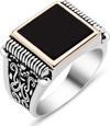 Gümüş Siyah Taşlı Erkek Yüzük