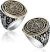 Bu mührün bulunduğu yüzük, Adem a.s.’ın kullandığı ve dünyaya gelirken cennette bıraktığı, daha sonra Cebrail a.s tarafından Cenab-Hakkın izniyle Davud a.s.’a getirilmiştir. Oğlu Süleyman a.s layık olduğundan ona verilmiştir. Öncelikle yüce Allah'ın ın celal ve cemal sıfatlarını sembolize eder. Bu mühür remizdir, rahmani bir semboldür. Siz de Gümüş Süleyman Mührü Yüzüğü sevdiklerinize armağan edebilirsiniz. Gümüş üzerine oksit kaplama yapılmıştır. Ürünlerimizin tamamı el emeği ile üretilmiştir. Gümüş ve değerli taşlar nedeniyle belirtilen ortalama ürün ağırlığında ± %10 sapma olabilmektedir.
