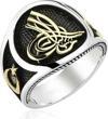 Tuğra, padişahın ismi ve lakabı bulunan alâmet, imza.Tuğra, hat sanatının bir kolu halinde yüzyıllar boyunca usta hattatlar eliyle yazılmıştır. Türkçe’de kelime olarak padişahın ismini ihtiva eden özel bir işaret, padişahın imzası gibi anlamlar ifade eder. Aslı Oğuz lehçesinde tuğra olup, hükümdarın basılmış imzası demektir. Orhan Gazi tarafından kullanılan ilk tuğra Orhan bin Osman ifâdesinden ibâret olup, tuğralardan ilki 1324 diğeri 1348 tarihlidir. Birinci Sultan Osman Gazi'ye ait bir tuğraya günümüze dek hiçbir yerde rastlanmamıştır. Bu nedenle 36 Osmanlı padişahı; ama 35 Osmanlı padişah tuğrası vardır. Padişahın kendisi ve babasının isminin yazıldığı kısma, taht, kürsü veya sere adı verilir. Buradan sola doğru uzanarak aşağıdan yukarıya doğru uzayan ve iç içe iki kavisten meydana gelen kısma ise, beyze veya sancak adı verilir. Osmanlı imparatorluğunu simgeleyen Tuğra armalı yüzüğü severek kullanabilir ve sevdiklerinize armağan edebilirsiniz. 925 ayar gümüşten imal edilmiştir. Gümüş üzerine rodyum kaplama yapılmıştır. Rodyum kaplama yapılan ürünler parlaklığını uzun süre muhafaza eder, oksitlenmesi gecikir. Gümüş tuğra armalı yüzük ve diğer ürünlerimizin tamamı el emeği ile üretilmiştir. Gümüş ve değerli taşlar nedeniyle ürün ağırlığında ± %10 sapma olabilmektedir.