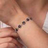 Nazar boncuğunu insanlar uzun yıllardan beri kötü bakıştan korunmak için kullanmışlardır. Kötü bakışların insanlar üzerinde olumsuz etki oluşturmasına karşı bir önlemdir nazar boncuğu… Bu sebeptendir ki insanlar sevdiklerini korumak için nazar boncuğu takmaktadır. Bu nazar bileklik de şıklığı ve zarafeti yansıtıyor. Her dönem sevilen ve şıklığından ödün vermeyen bu modeli ; doğum günü hediyesi, sevgililer günü hediyesi veya annelere hediye olarak özel günlerde tercih edebilirsiniz. Gümüş nazar kadın bileklik, 925 ayar gümüşten imal edilmiştir. Gümüş üzerine rodyum kaplama yapılmıştır. Rodyum kaplama yapılan gümüş kadın bileklikler parlaklığını uzun süre muhafaza eder, oksitlenmesi gecikir. Tüm gümüş kadın bilekliklerinde olduğu gibi bu gümüş nazar kadın bileklik modeli de tamamı el emeği ile üretilmiştir. Gümüş ve değerli taşlar nedeniyle belirtilen ortalama ürün ağırlığında ± %10 sapma olabilmektedir.