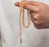 Kehribar, çam ağacı reçinesinin toprak altında uzun yıllar boyunca birikerek oluşan bir maddedir. Hemen hemen taş ile aynı sertliktedir fakat yoğunluğu düşüktür. Çam kokusu yayar. Oluşumu uzun zaman aldığından ve yapay olarak yapılamadığından değerli bir maddedir. Sıkma kehribar ise kehribar taşından farklı olarak onun özelliklerini taşıyan, görüntü itibariyle ona benzeyen fakat gerçek olmayan bir malzemedir. Ülkemizde ve dünyanın bir çok yerinde kehribar taşından çeşitli malzemeler üretilmiştir. Ülkemizde en yaygın olarak tesbih üretilmektedir. Kehribar tesbihler elde ısındıkça kehribar benzeri bir koku verir ve renk değiştirir. Bir çok rengi vardır. Hatta iki rengin birleşiminden oluşan kehribar tesbih modelleri de vardır.Ülkemizin güzide tesbih ustaları bu malzemeyi sıklıkla işlemek suretiyle çeşitli sanat eserleri meydana getirirler. Bu tesbihler de koleksiyonerler tarafından alınıp satılmaktadır. Sıkma kehribar tesbih modeli de günlük hayatta kullanılabilecek çok şık bir tesbih çeşididir. Özel günlerin vazgeçilmez hediyesi sıkma kehribar tesbihler erkekler için doğum günü, sevgililer günü ve babalar günü gibi özel zamanlarda hediye olarak tercih edilebilir.Sıkma kehribar tesbih modeli diğer kehribar tesbih modellerinde olduğu gibi tamamen el emeği ile imal edilmiştir.