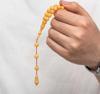 Kehribar, çam ağacı reçinesinin toprak altında uzun yıllar boyunca birikerek oluşan bir maddedir. Hemen hemen taş ile aynı sertliktedir fakat yoğunluğu düşüktür. Çam kokusu yayar. Oluşumu uzun zaman aldığından ve yapay olarak yapılamadığından değerli bir maddedir. Sıkma kehribar ise kehribar taşından farklı olarak onun özelliklerini taşıyan, görüntü itibariyle ona benzeyen fakat gerçek olmayan bir malzemedir. Ülkemizde ve dünyanın bir çok yerinde kehribar taşından çeşitli malzemeler üretilmiştir. Ülkemizde en yaygın olarak tesbih üretilmektedir. Kehribar tesbihler elde ısındıkça kehribar benzeri bir koku verir ve renk değiştirir. Bir çok rengi vardır. Hatta iki rengin birleşiminden oluşan kehribar tesbih modelleri de vardır.Ülkemizin güzide tesbih ustaları bu malzemeyi sıklıkla işlemek suretiyle çeşitli sanat eserleri meydana getirirler. Bu tesbihler de koleksiyonerler tarafından alınıp satılmaktadır. Sıkma kehribar tesbih modeli de günlük hayatta kullanılabilecek çok şık bir tesbih çeşididir. Özel günlerin vazgeçilmez hediyesi sıkma kehribar tesbihler erkekler için doğum günü, sevgililer günü ve babalar günü gibi özel zamanlarda hediye olarak tercih edilebilir.Sıkma kehribar tesbih modeli diğer kehribar tesbih modellerinde olduğu gibi tamamen el emeği ile imal edilmiştir.