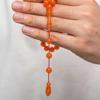 Kehribar, çam ağacı reçinesinin toprak altında uzun yıllar boyunca birikerek oluşan bir maddedir. Hemen hemen taş ile aynı sertliktedir fakat yoğunluğu düşüktür. Çam kokusu yayar. Oluşumu uzun zaman aldığından ve yapay olarak yapılamadığından değerli bir maddedir. Sıkma kehribar ise kehribar taşından farklı olarak onun özelliklerini taşıyan, görüntü itibariyle ona benzeyen fakat gerçek olmayan bir malzemedir. Ülkemizde ve dünyanın bir çok yerinde kehribar taşından çeşitli malzemeler üretilmiştir. Ülkemizde en yaygın olarak tesbih üretilmektedir. Kehribar tesbihler elde ısındıkça kehribar benzeri bir koku verir ve renk değiştirir. Bir çok rengi vardır. Hatta iki rengin birleşiminden oluşan kehribar tesbih modelleri de vardır.Ülkemizin güzide tesbih ustaları bu malzemeyi sıklıkla işlemek suretiyle çeşitli sanat eserleri meydana getirirler. Bu tesbihler de koleksiyonerler tarafından alınıp satılmaktadır. Sıkma kehribar tesbih modeli de günlük hayatta kullanılabilecek çok şık bir tesbih çeşididir. Özel günlerin vazgeçilmez hediyesi sıkma kehribar tesbihler erkekler için doğum günü, sevgililer günü ve babalar günü gibi özel zamanlarda hediye olarak tercih edilebilir.Sıkma kehribar tesbih modeli diğer kehribar tesbih modellerinde olduğu gibi tamamen el emeği ile imal edilmiştir.