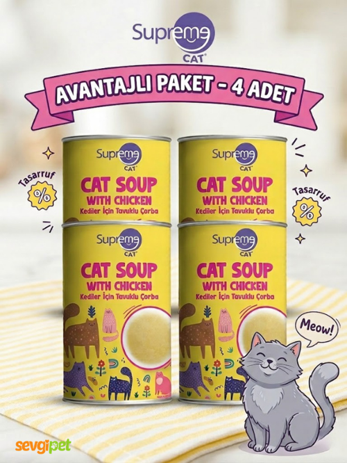 Paket İçeriği: 4 adet Supreme Cat Tavuklu Kedi Çorbası (135 ml) gönderilmektedir.