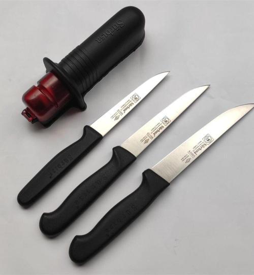 Günlük kullanım için ideal bir settir. Içeriğinde 12,5 mutfak bıçağı, 11,5 cm mutfak bıçağı ve 9,5 cm sebze bıçağı ile bir adet bileme aparatı içerir. Paslanmaz çelik ve antibakteryel dolgu sap plastikten imal edilmiştir.