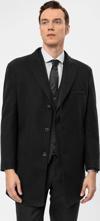 Armürlü deseniyle şık ve modern bir görünüm sunan siyah erkek kaban, her ortamda dikkat çeker.