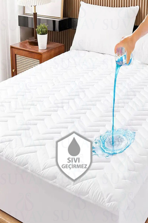 Suvay Kapitoneli Fitted Full Kenar Su Sıvı Geçirmez Alezi Beyaz Renkli Tek Çift Kişilik Yatak Koruyucu