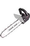 Aparat, avuç taşlama makinesini, zincirli testereye çevirmektedir.
