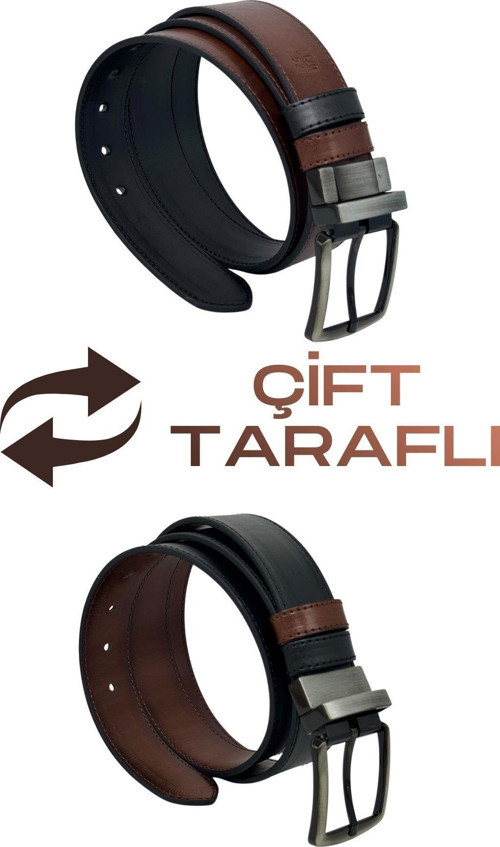 Süzer Deri Kahverengi / Siyah Çift Taraflı Suni Deri 4 cm. Genişlik Dönerli Tokalı Spor Erkek Kemer - 7110-13