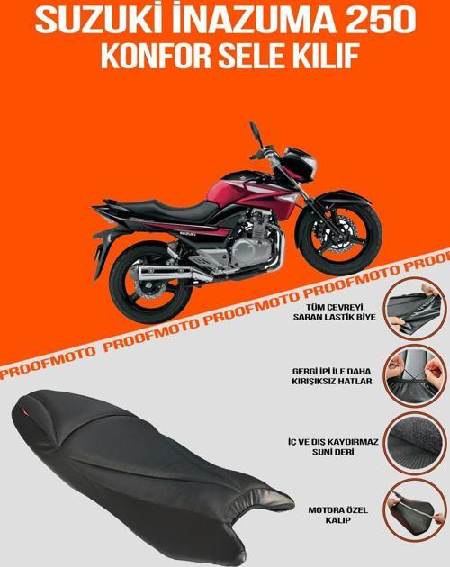 Proofmoto'nun sunduğu konfor sele kılıfı, Suzuki Inazuma 250 motosikletiniz için özel olarak tasarlanmıştır.