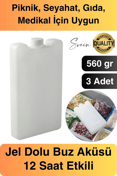 Svein 12 Saat Süreli 560 gr Jel Dolu Buz Aküsü Plastik Soğuk Zincir Gıda Yiyecek Uzun Süre Koruma 3 Adet