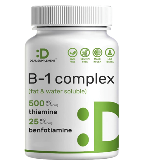 Deal Supplement Vitamin B1 500Mg With Benfotiamine, 240 Capsul – 2 İn 1 E.Nhanced Formula – Fat & W