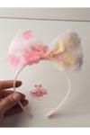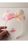 Renkli çiçeklerle süslenmiş bu fiyonklu çocuk taç, miniklerin özel günlerinde şıklığını tamamlıyor.