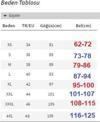 - 46 beden ------ 85 cm | 100 cm