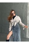 Sade ve düz deseniyle zamansız bir görünüm elde ederken, denim kumaşı dayanıklılığı ve şık duruşuyla ön plana çıkar