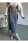 Swet Shop Jeans Kadın Önü Düğmeli Uzun Boy Siyah Kar Yıkama Antrasit Renk Likralı Kot Etek Antrasit XL