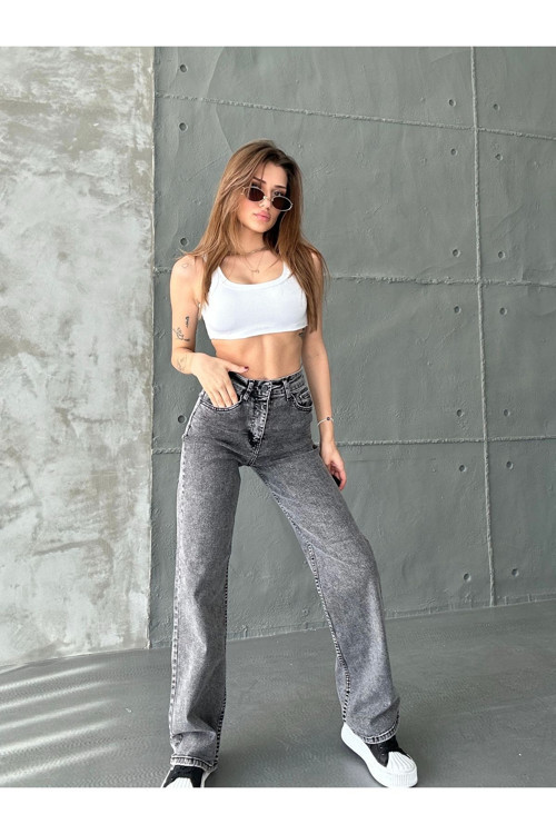 Swet Shop Jeans Kadın Siyah Kar Yıkama Yüksek Bel Likralı Wide Leg Geniş Paça Palazzo Kot Pantolon Gri 40-29