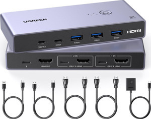 Ugreen 8K HDMI KVM Switch 2-in-1, 2xHDMI In, 2xUSB-C In, 1*HDMI Out, 3*USB-A, 1*USB-C, 1*Mini USB, 25961