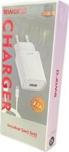 Sword markasının beyaz renkteki micro şarj seti, 2100 ma gücünde ve sw-ca12m modelidir.