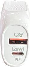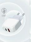 Sword markasının beyaz renkteki SW-Q3PD 20W hızlı şarj başlığı USB-PD, hızlı ve etkili bir şarj deneyimi sunar.