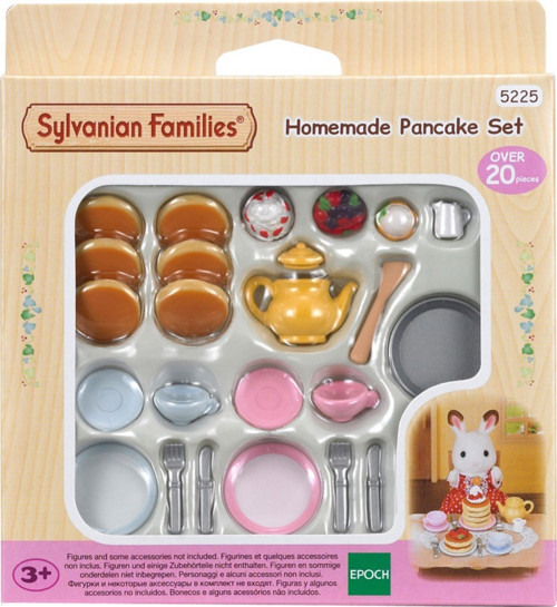 Sylvanian Families Krep Seti Krep zamanı ! Karnı acıkan Sylvanian Families üyeleri lezzetli krepler hazırladı. Bu set içerisinde çift kişilik tabak, çatal bıçak seti, 2 adet fincan, 1 adet tava, 1 adet çaydanlık ve renkli krepler bulunmaktadır. Figürler sete dahil değildir.