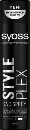 SYOSS STYLE PLEX SAÇ SPREYİ 400 ML * İçeriğindeki bakım yapan StylePlex şekillendirici kompleks ile saça şekil verirken bakım yapar. * Saçı kurutmadan şekillendirmeye yardımcı olur. * 48 saat ekstra güçlü tutuş sağlar. * Yıkamaya dayanıklı nemlendirme etkisi vardır. * Saçta %75’e kadar daha az kırılma sağlar.
