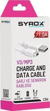 Syrox C84 V3/MP3 Şarj ve Data Kablosu, 2 yıl garanti ile sunulmaktadır. Dayanıklı yapısı ile uzun ömürlü ve güvenilir bir kullanım sağlar.