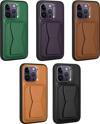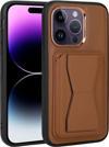 Szr Store İphone 14 Pro Max Uyumlu Kartlıklı Standlı Pu Deri Zore Memo Kılıf-Kahverengi