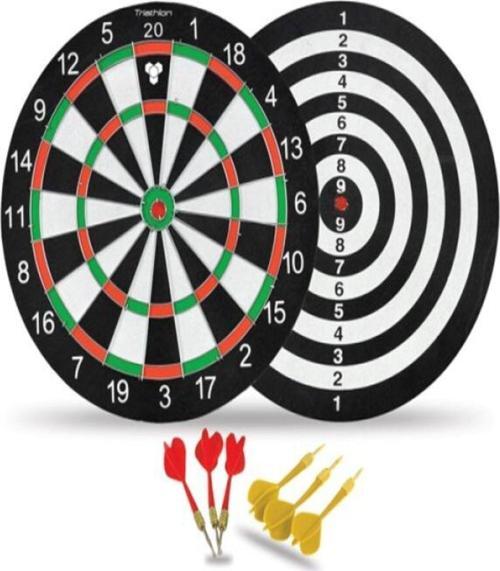 Triathlon T-107 Dart Seti (36 x 36 cm) Çift Taraflı Dart Tahtası Seti / 6 Adet Çelik Ok / Hedef Tahtası Oyunu