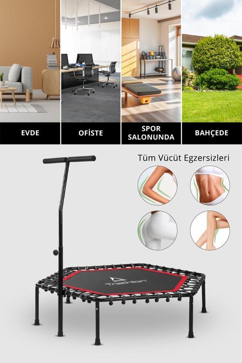 Evde hem eğlenmek hem de forma girmek isteyenler için tasarlanan Triathlon Egzersiz Trambolini, dayanıklı yapısı ve destekleyici tutunma barı ile güvenli ve etkili bir antrenman deneyimi sunar.