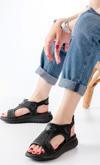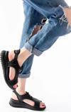 T-221 Siyah Spring Paraşüt Kumaş Lastikli Ortopedik Kadın Sandalet