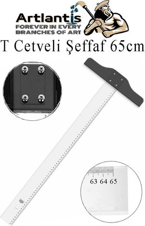 Artlantis T Cetveli Şeffaf 65 cm 1 Adet Plastik Mika T Cetveli Çizim Cetveli Mimarlık Mühendislik Öğrenci Tasarım Cetveli