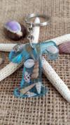 AtaRoots "T" HARFİ - Açık Mavi Deniz Epoksi Harf Anahtarlık – Gerçek Deniz Kabuğu, El Yapımı, Benzersiz
