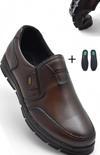 Ispartalılar TAB1645-S Kışlık Tam Ortopedik Taban %100 Hakiki Deri Bağcıksız Erkek Ayakkabı Kauçuk Kaymaz Taban
