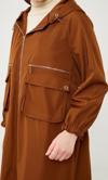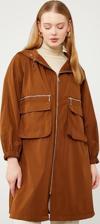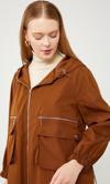Taba Kapüşonlu Fermuar Kapama Trençkot